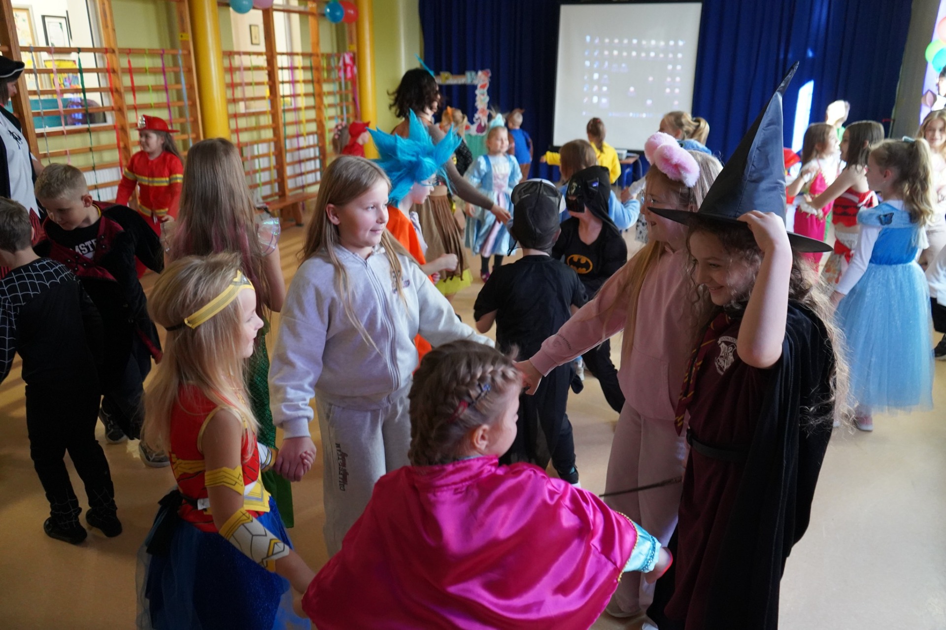 Dziś nasza sala gimnastyczna zamieniła się w prawdziwą bajkową krainę! 🏰✨ Uczniowie oddziału przedszkolnego, zerówki oraz klas I–III przyszli przebrani za swoich ulubionych bohaterów z bajek – pojawiły się księżniczki, superbohaterowie, wróżki, zwierzątka i wiele innych postaci! Były wspólne zabawy, tańce, konkursy i mnóstwo radości. Dziękujemy wszystkim dzieciom, wychowawcom i rodzicom za zaangażowanie, pomysłowe stroje i bajkową atmosferę! Bajki uczą, bawią i przypominają nam, że dobro zawsze zwycięża!